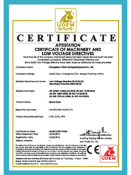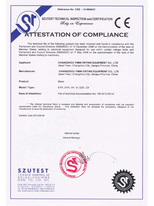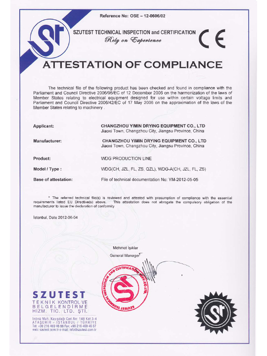 Certificato di macchinari e direttive a bassa tensione